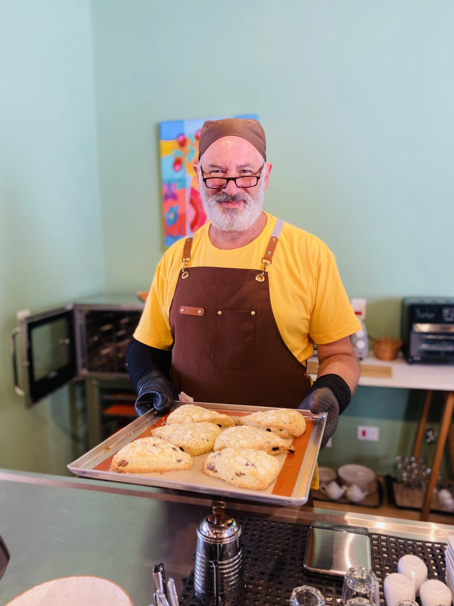 No Espaço também temos a Cafeteria Filomena Arte e Café, e nossa especialidade é o Scone, um doce inglês, muito levinho e gostoso, que é servido quentinho, com diferentes sabores, e agora também na versão salgada.