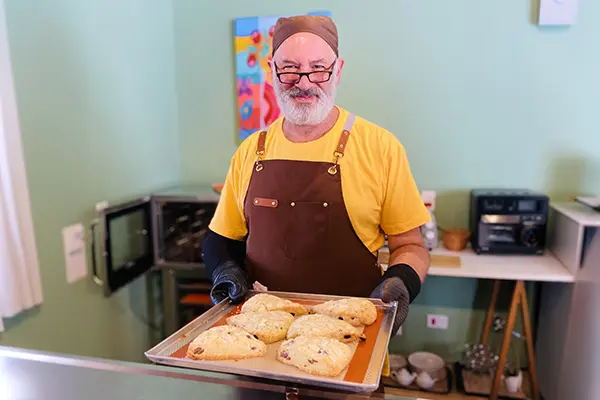 Delicie-se com cafés especiais da Mantiqueira e o famoso Scone, um doce inglês leve e crocante, preparado pelo Sérgio.