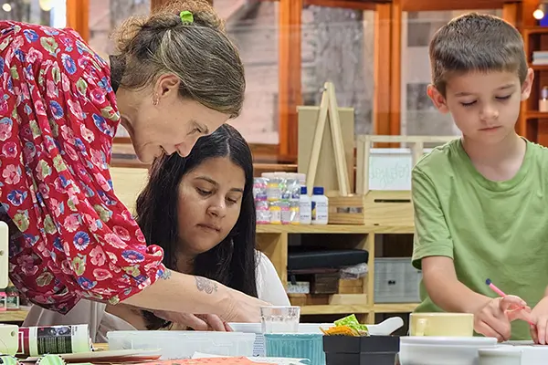 Isso mesmo! No ateliê do Espaço de Arte você pode fazer uma experiência muito bacana, uma Oficina Criativa, que é uma aula prática e rápida, com cerca de 1h30 de duração, em que você aprende uma técnica, faz sua peça e leva uma lembrança única, feita por você! E não precisa ter nenhum conhecimento prévio, as aulas são para qualquer pessoa que queria fazer. Você agenda o horário, o dia e o projeto desejados, faz e leva. Temos projetos em diferentes técnicas: Pintura Bauernmalerei, Aquarela, Pintura em Taças, Pintura em Tecido, Colagem, Estamparia, Serigrafia, Flores Prensadas, Cianotipia e muito mais.